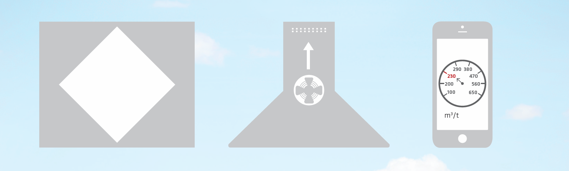 Luftmengden i alle hettene i VoiceLink serien kan nå begrenses elektronisk og via APP til akkurat den maksimale luftmengden du ønsker (f.eks. maks. 230 m3/t). Begrensningen kan oppheves når som helst via APP om ønskelig.