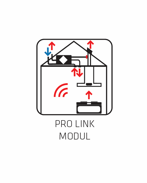 Den avanserte trådløse "Trigger Link modulen", Pro Link Basic, består av et sendermodul som monteres ved hetten og et mottakermodul som monteres ved ventilasjonsanlegget – kommunikasjonen mellom de to enhetene foregår trådløst.