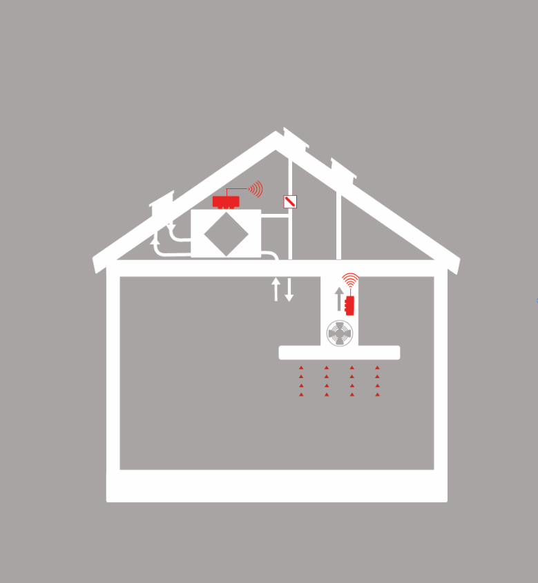 Her er løsningen på hvordan du kan balansere luftskiftet på kjøkkenet ditt dersom du har et lavenergihus eller en leilighet med ventilasjonsanlegg uten å måtte føre kabler mellom ventilasjonsanlegget og hetten. Pro Link er så å si en avansert versjon av THERMEX Trigger Link Module.