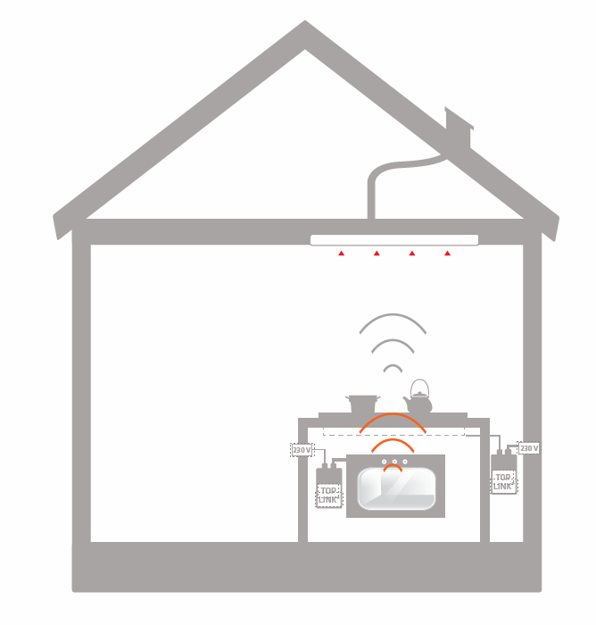 - Når du slår koketoppen eller oven, sender Top Link et trådløst signal til kjøkkenviften.