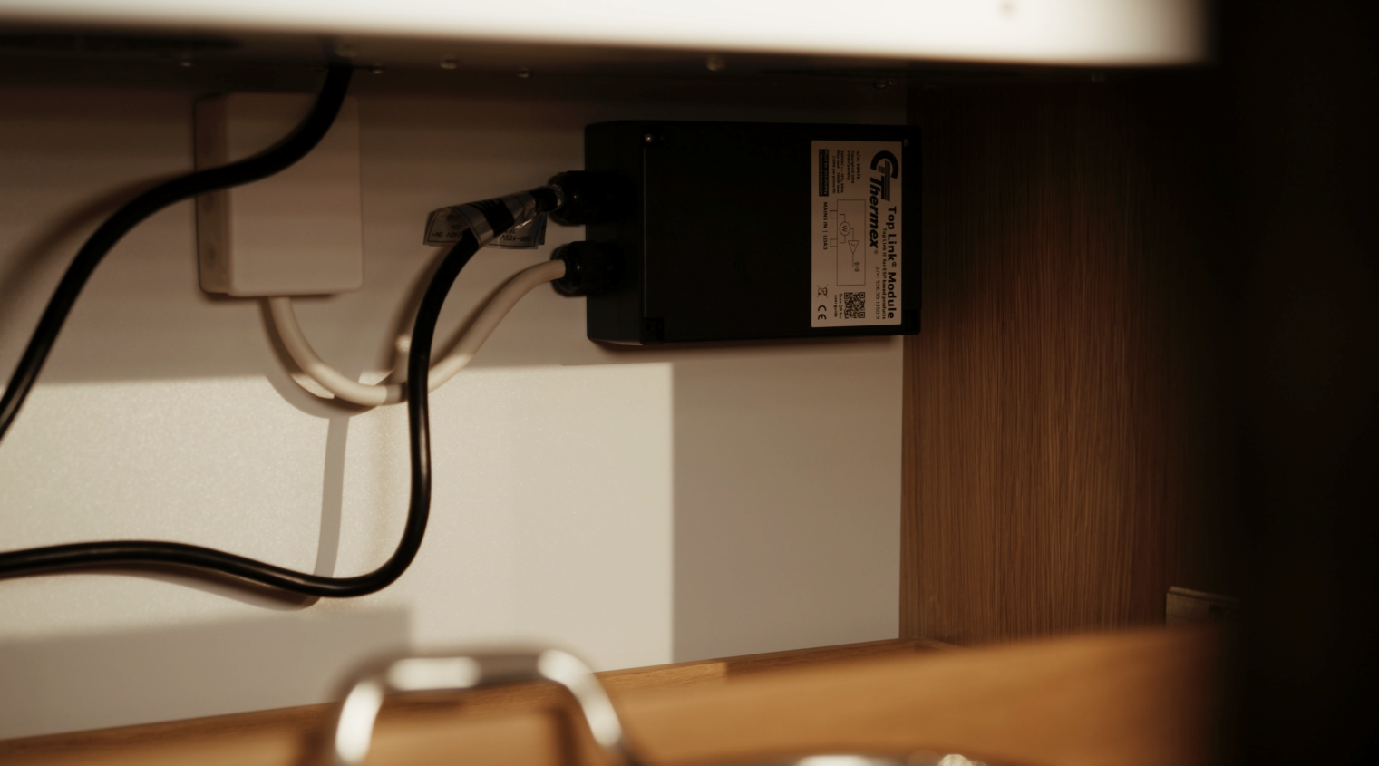 Top Link arbeider med radiobølger og kan monteres diskret under alle typer benkplater, også i granti eller betong.