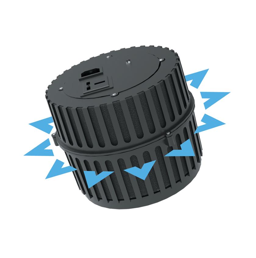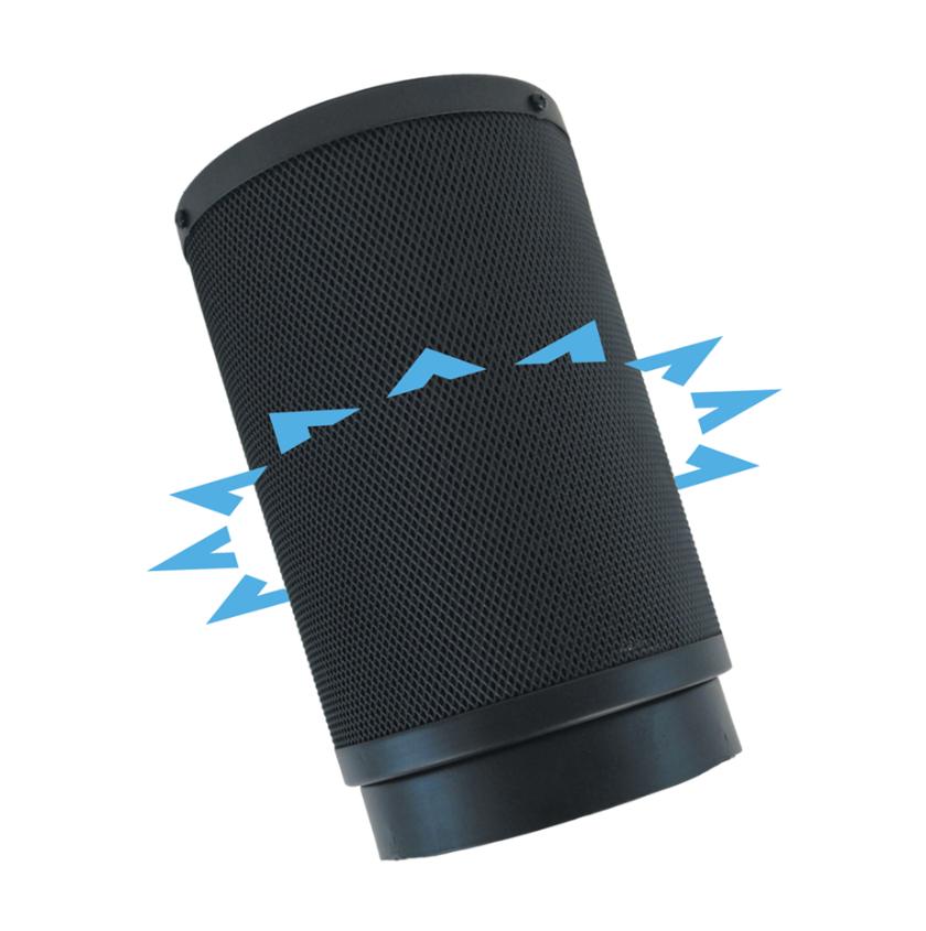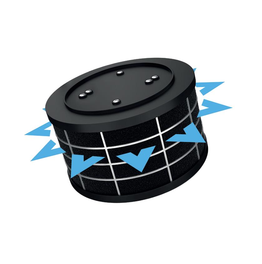 Utformingen av Carbon Flex-filteret betyr at det er et svært lite trykktap på luftstrømmen når den sendes gjennom filteret. Vanligvis betyr en høy filtreringseffekt også et svært høyt trykktap, da metoden for å oppnå høy effekt så langt har vært å legge et tykkere lag med aktivert karbon i filteret. Et høyt trykktap betyr at avtrekksviften ikke kan oppnå full utnyttelse av sugekraften, og dermed fjernes avgasser og kokerøyk mindre effektivt. Men med den sylindriske utformingen av Carbon Flex-filteret er filtreringsoverflaten betydelig større, og dermed får du det beste fra begge verdener. Høy effektivitet og lavt trykktap.