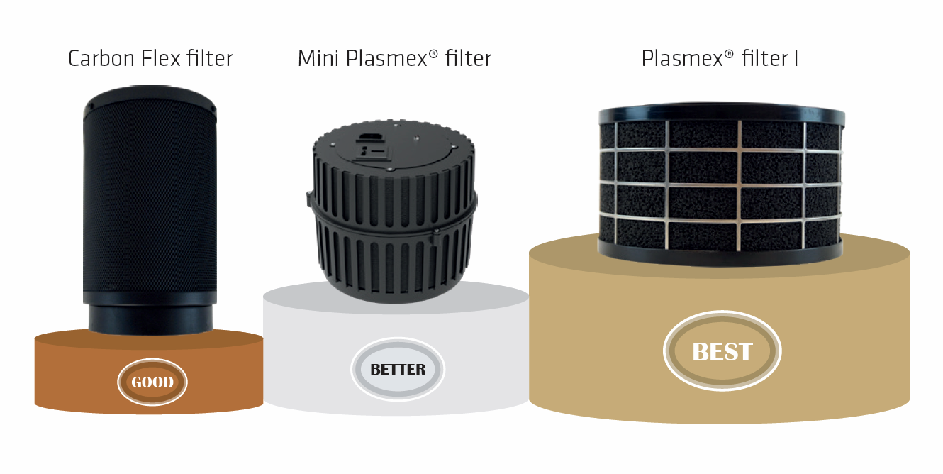 Thermex Plasmex-filteret kan neppe sammenlignes med et tradisjonelt kullfilter. Effektiviteten er i en liga for seg selv med så mye som 96,50% av luften som blir renset når den passerer gjennom filteret. Akkurat som med Mini Plasmex fungerer filteret ved å lade luftpartiklene elektronisk, noe som betyr at lukten filtreres grundig og effektivt ut i filteret. I tillegg til å rense luften for lukt, filtreres også bakterier, røyk og andre forurensende stoffer ut. Teknologien brukes også i de mest avanserte luftrensere, blant annet til fordel for allergikere.