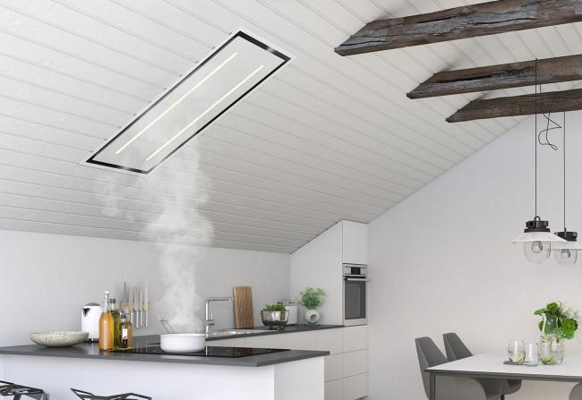 En takintegrert hette fra Thermex er praktisk talt usynlig for det blotte øye. Den diskrete platen, som dekker selve hetten, går i ett med taket. Hetten avsløres faktisk bare av de tre-fire lyspunktene som er på når kjøkken viften er på. Du får dermed en estetisk løsning som gir lys og luft på kjøkkenet ditt når du velger en takintegrert avtrekkshette.