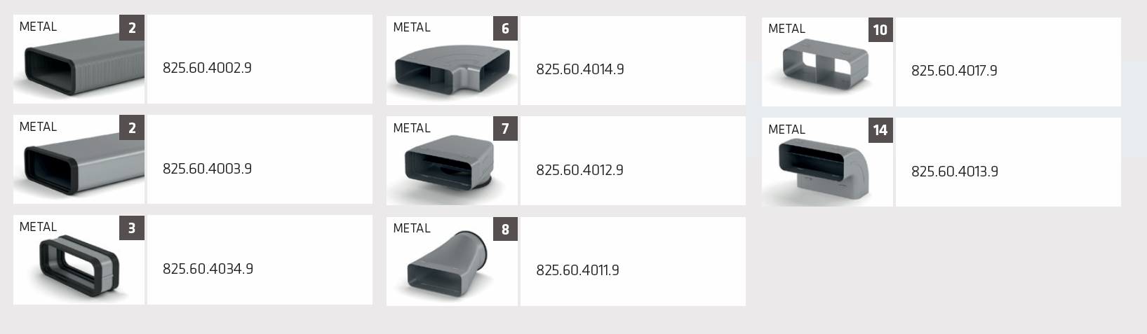 THERMEX kan levere et rektangulært kanalsystem beregnet for tilkobling med en rund kanal. Flat kanal egner seg spesielt godt der det ikke er så mye plass, for eksempel oppe på et overskap, innfelte i tak eller gulv eller i en kjøkkenskap sokkel.