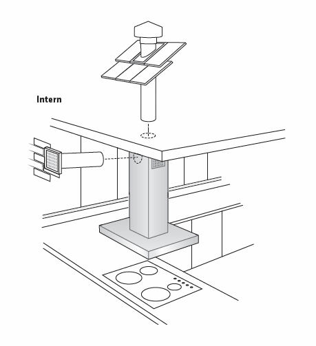 Kjøkkenvifter med intern motor kobles med avtrekket til utendørs gjennom tak eller vegg.