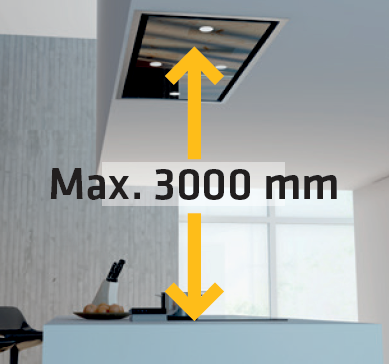 Må du være oppmerksom på at avstanden fra kokesonen til filteroverflaten er lengre enn normalt. Denne typen modell er vanligvis utstyrt med kantsuging, noe som øker effektiviteten på suget. THERMEX anbefaler at avstanden mellom koketoppen og filteret ikke overstiger 3 meter.